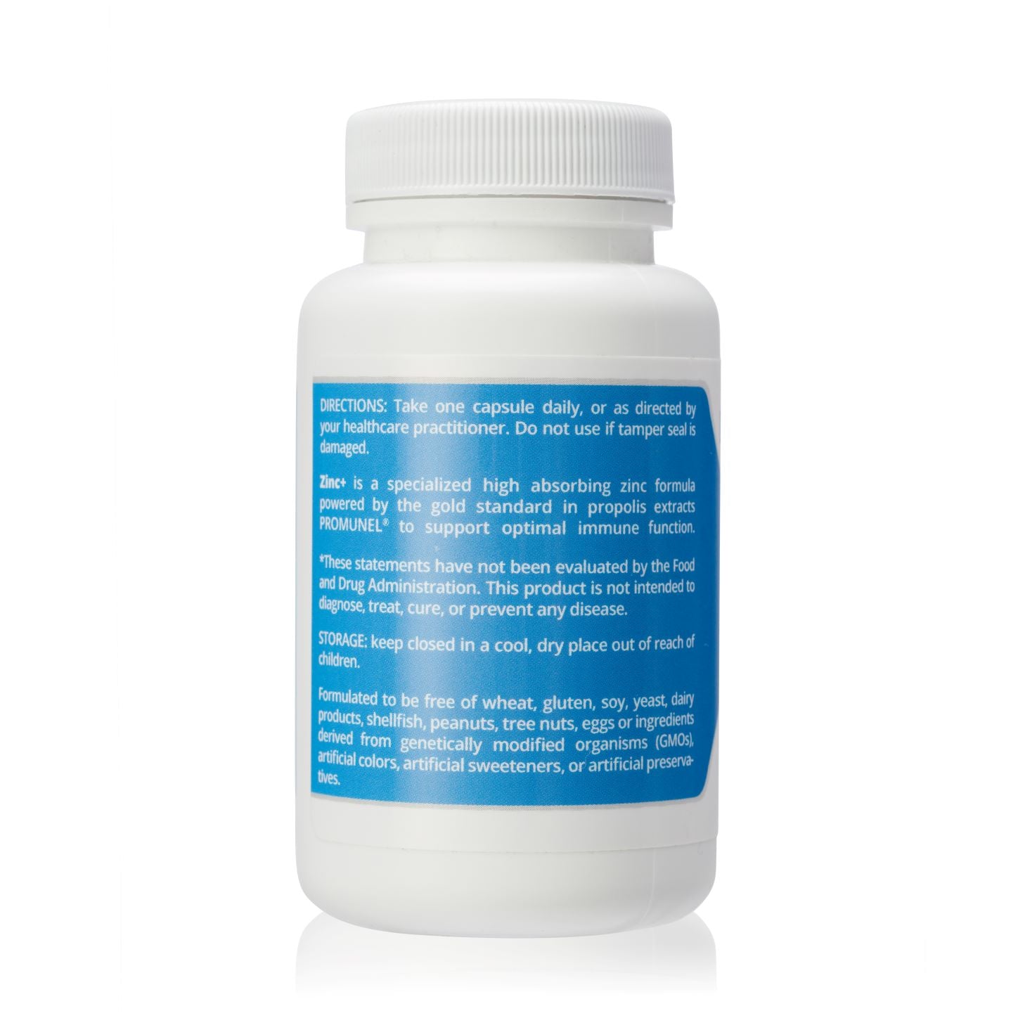 Wheat, gluten, soy, yeast, dairy products, shellfish, peanuts, tree nuts, eggs, genetically modified organisms (GMO's), artificial colors, sweeteners, or preservatives.